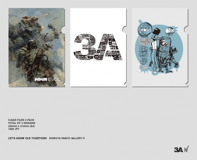 ThreeA의 아트와 로고를 다룬 클리어 파일 3종을 1세트로 판매