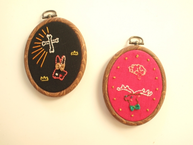 심플한 스티치로 자수 미니 프레임을 만듭니다.이번 워크숍을 위해서 그려 주신 「사슴×뇌 된장」 「토끼×골십자」 「고양이×심장」의 3개의 도안으로부터 좋아하는 것을 골라 자수합니다미니 프레임은 벽에 장식하거나 끈을 붙여 펜던트나 가방 매력으로도 즐겨 주세요.(워크샵에서는 미니 프레임을 1점 완성합니다.도안은 3점 가지고 가실 수 있습니다. )
