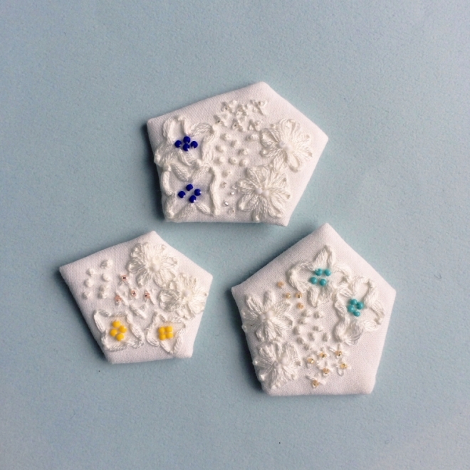 자수 레이블 "patterie (패터리)"의 디자이너로서, 액세서리의 디자인도 실시하는 스즈컷 그림씨에 의한 워크숍입니다.흰색에 흰색을 겹치는 눈 같은 꽃다발을 이미지한 자수 브로치기본 4개의 꿰매는 방법의 레슨 후에 브로치 위에 꽃다발을 만들도록 자수를 하고 브로치로 완성합니다.겨울의 계절에 딱 맞는 「눈의 꽃다발」 브로치를 만듭시다.