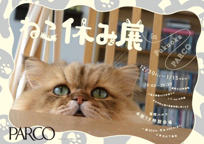 12/30보다, 후쿠오카 파르코에서 전국에서 화제 비등중의 전람회 “고양 휴일전 in 후쿠오카 파르코”의 개최가 정해졌습니다.