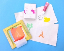 오사카의 레트로 인쇄 JAM의 직원이 집에서 할 수 있는 실크스크린 TOY를 사용해 천이나 종이에 인쇄하는 간단한 워크숍을 실시합니다.